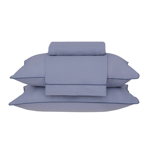 O Jogo de Cama Buddemeyer Basic Percalle Azul é confeccionado em Percal 180 fios, 100% algodão de fio penteado, de toque macio e excelente qualidade. Atemportal, apresenta detalhes em roletê nas fronhas e lençol superior, com refinado acabamento, que ressalta o cuidado e a versatilidade que só a Buddemeyer proporciona.