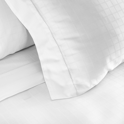 Jg de Cama S.King Demask Square Branco 300 fios 100% Algodão